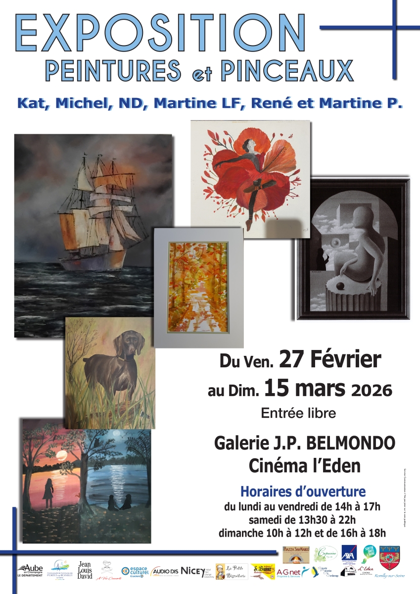 Une belle variété d'oeuvres et de sujets vous attendent dans cette nouvelle exposition ayant pour thème "peintures et pinceaux". Venez découvrir les styles picturaux des 6 artistes exposants !