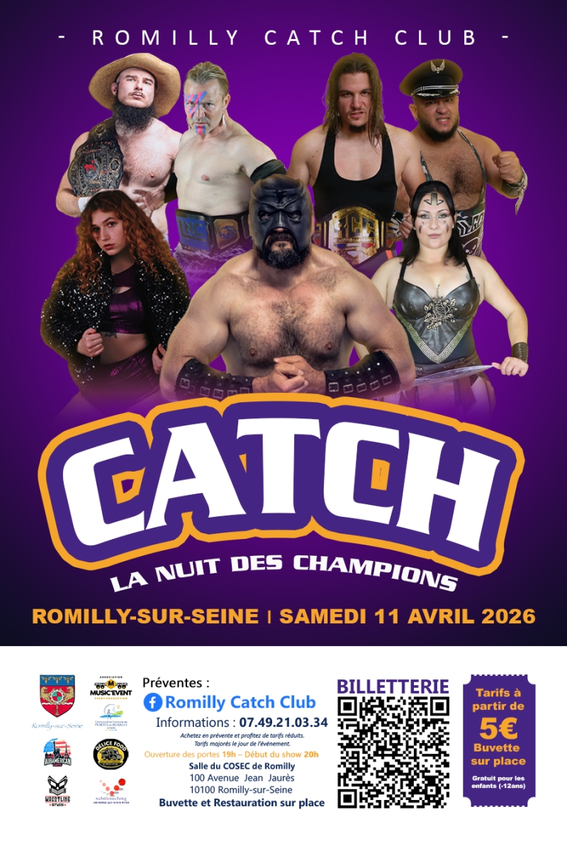 Les catcheurs du Romilly Catch Club mettent le feu sur le ring ! Venez vibrer et passer un super moment en famille. Des combats et des catcheurs hauts en couleur ! Ambiance FAMILIALE !
