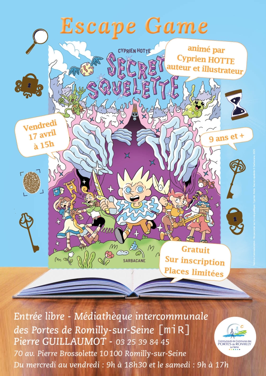 Cyprien HOTTE, auteur et illustrateur de la bande dessinée "Secret Squelette" vous donne rendez-vous pour participer à un "Escape Game". Inscrivez-vous vite !